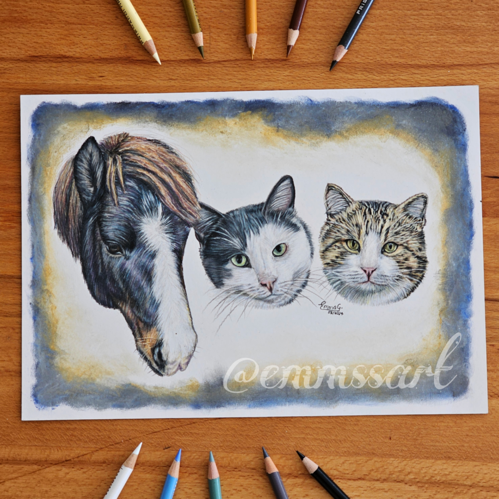 Hier finden Sie meine mit Buntstift gezeichneten Haustierzeichnungen.