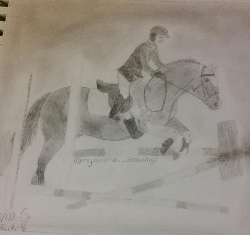 Das Zeichnen habe ich mir in meiner Kindheit mit viel Übung selbst beigebracht. Wie viele Kinder habe ich in jungen Jahren viel gezeichnet und war schon immer vor allem auf Pferde fixiert. Mit 11 habe ich im Internet eine sehr schöne, realistische Fine Art Zeichnung von einem Pferd gesehen, die mich so beeindruckt hat, dass ich auch so zeichnen können wollte. Also habe ich mich hingesetzt und versucht so realistisch zu zeichnen, wie ich es konnte, egal wie lang es dauern würde.